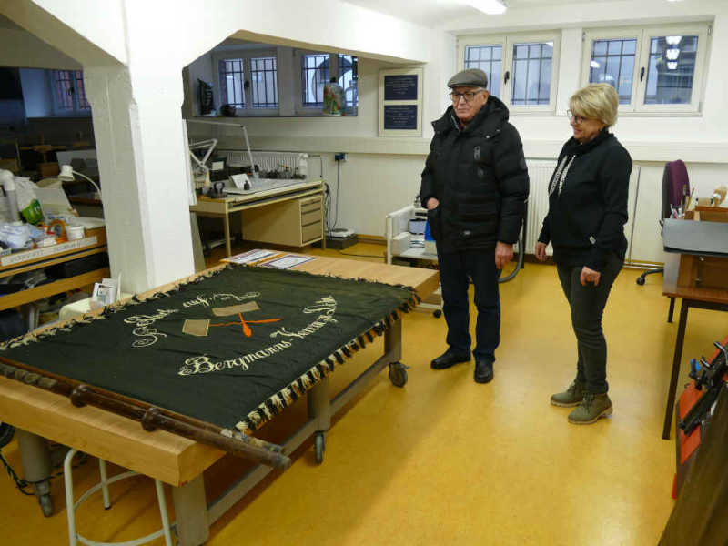 Fahne des Bergmanns-Vereins Dölau findet neue HeimstätteZu den im 19.Jahrhundert gegründeten Vereinen in unserem Stadtteil gehörte unter anderem der „Bergmanns-Verein Dölau“. „Im Jahr 1887 gegründet, gehörte der bis 1945 noch offiziell bestehende Bergmanns-Verein Dölau zu den wirtschaftlichen Vereinen, der vorwiegend die Berufsinteressen seiner Mitglieder vertrat. Von Anfang an hatte der Bergmanns-Verein aber auch kulturelle Funktionen im Ort und pflegte bergmännische Traditionen.“ 1) Ob bei Veranstaltungen, Festumzügen oder Versammlungen, die Fahne des Vereins wurde als Symbol mitgeführt. Verantwortlich für diese Vereinsfahne fühlte sich Franz Busse (25.06.1884 - 21.01.1958). Der in Dölau Geborene und aus einer alten Bergmannsfamilie Stammende, dürfte wohl zu den letzten im Dorf wohnenden Bergleuten gezählt haben. Nun haben die Nachkommen von Franz Busse beschlossen die bisher aufbewahrte Vereinsfahne der Öffentlichkeit zur Verfügung zu stellen. Am 03.Februar diesen Jahres übergab der Enkel von Franz Busse, Gerhard Busse, dem Stadtmuseum Halle (Saale) dieses Dokument der Dölauer Vereinsgeschichte. (B.W., Februar 2026) Quellen: 1)Dölauer Vereine, Müller/Wissenbach, 1.Ausgabe 2016, Schäfer Druck & Verlag GmbH, Langenbogen 2) Archiv Gerhard Busse 3) Foto Bernd Wolfermann